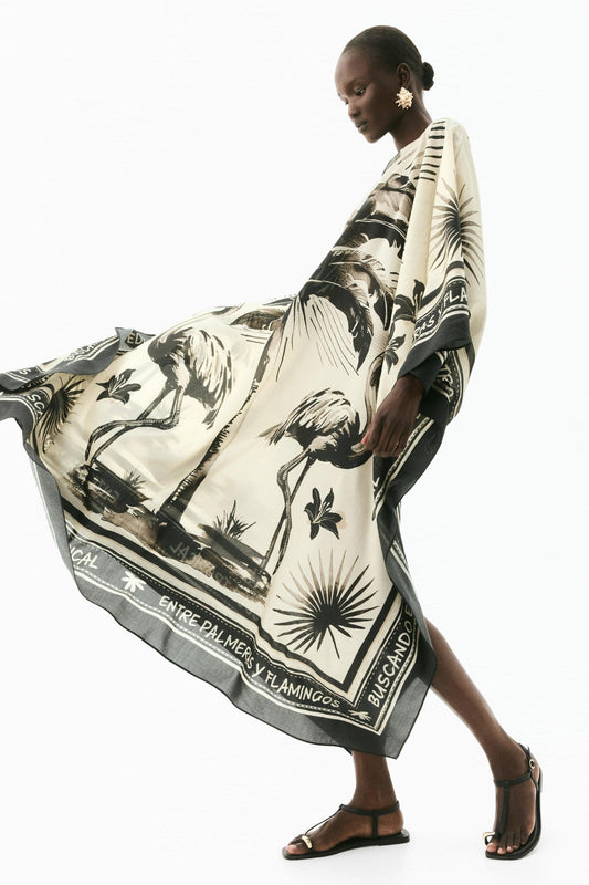 Oversized Flamingo Kaftan Maxi Dress