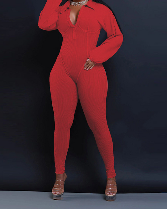 V Neck Slim Splicing Jumpsuit