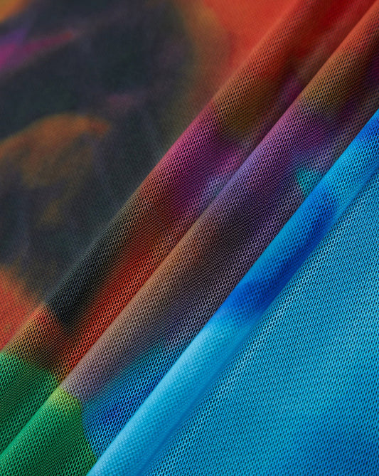 Tulle Printed Mesh Strapless Tube Midi Dress