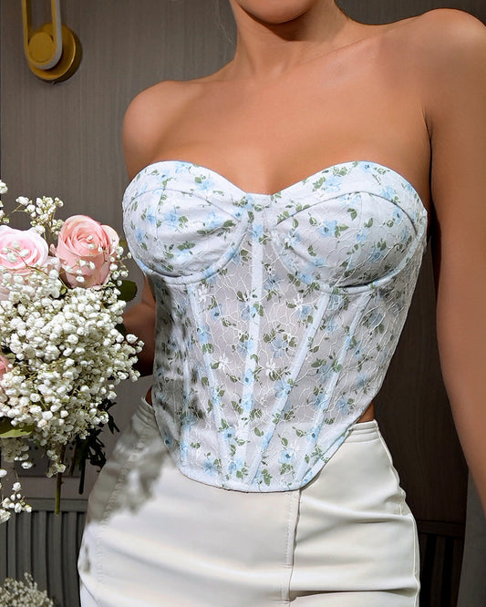 Low-Cut Feather Paneled Short Underwired Herringbone Top