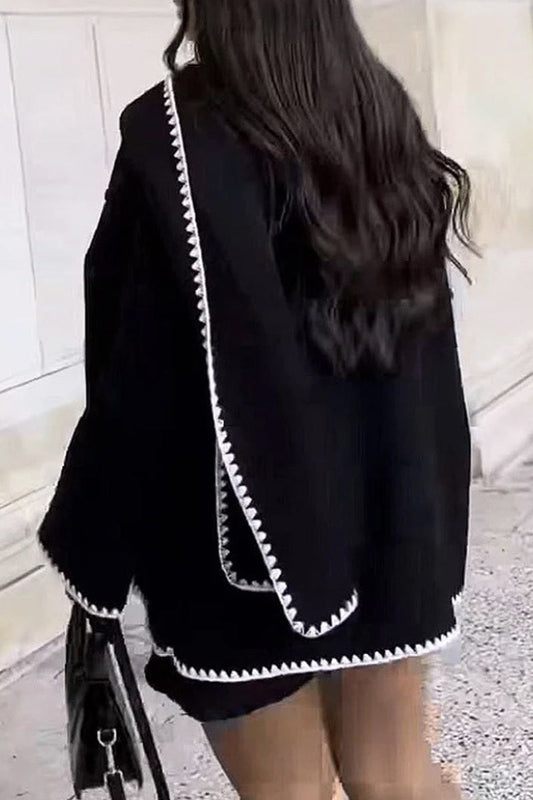 Casual British Style Solid Tassel Contrast Scarf Collar Outerwear(5 Colors)