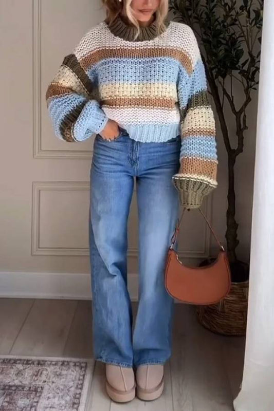 Casual Comfortable Striped Crewneck Sweater