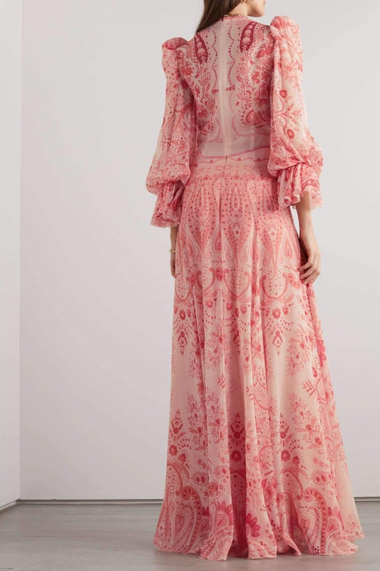 Gloria One Shoulder Ruffle Maxi Chiffon Dress