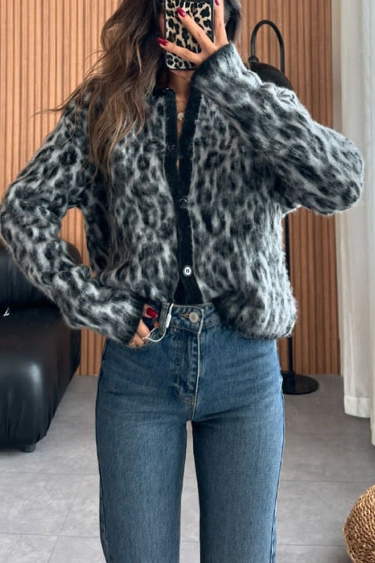 Wool and Alpaca Blend Animal Print Cardigan