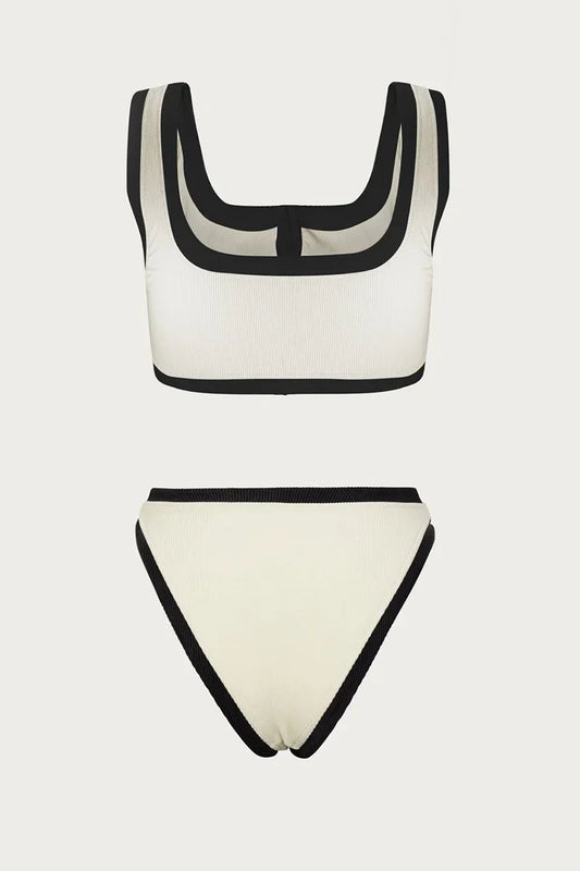 Elegant Contrast Button Detail Two-Piece Swimsuit
