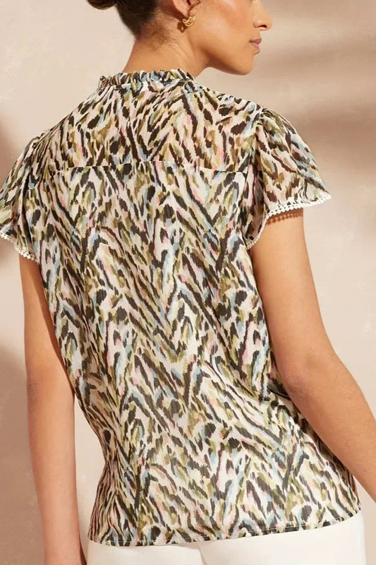 Elegant Leopard Print Cotton Long Sleeve Blouse