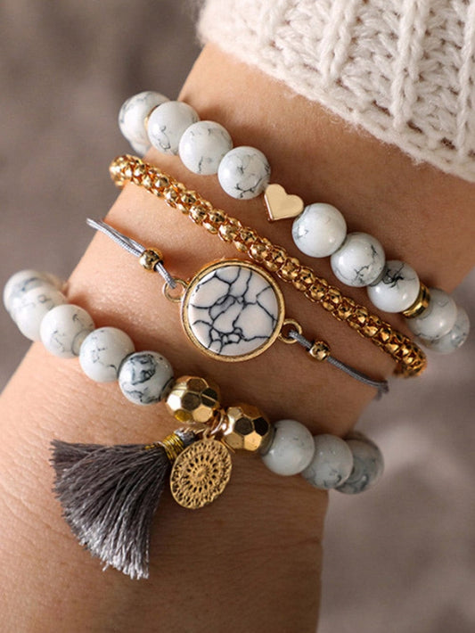 Elegant 4-Piece Mama Pearl Beaded Bracelet Collection