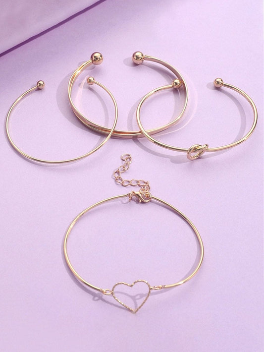 Golden Hearts Adjustable Bracelet Set - Romantic 4-Piece Jewelry Collection