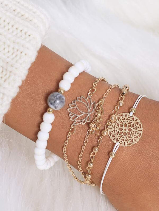 Lotus & Letter Detail Chain Bracelet 5pcs for Women