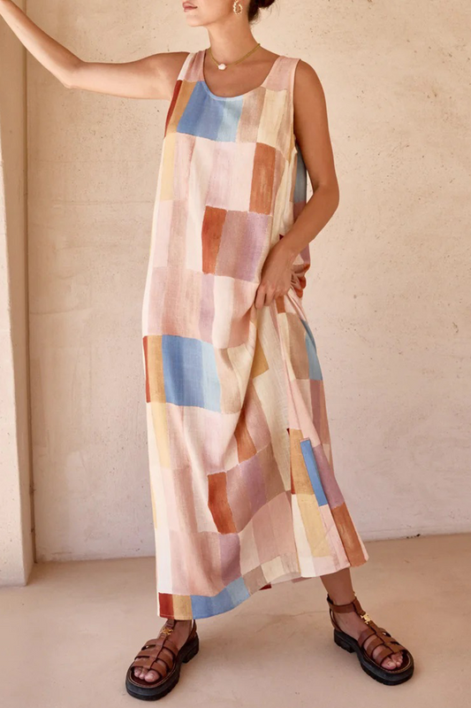 Casual Plaid Cardigan U Neck Sleeveless Dresses