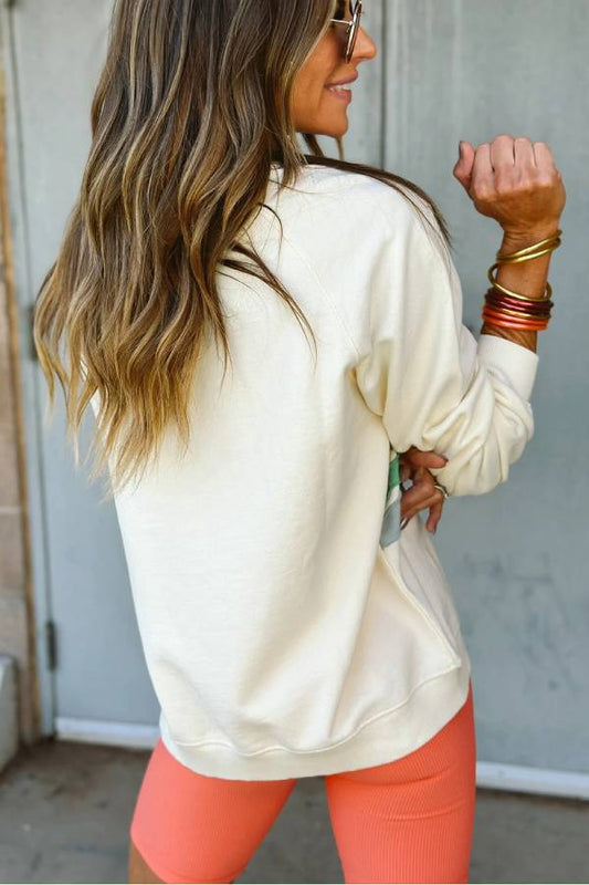 Apricot Rainbow Colorblock Pullover Sweatshirt