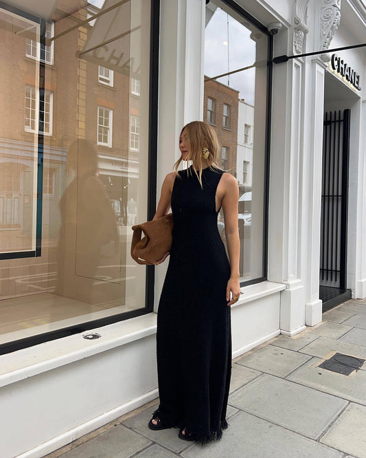 Beach Vacation Sexy Dress Knitted Sleeveless Tassel Maxi Dress Summer Women