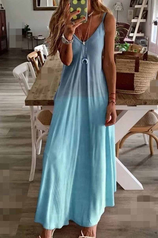 V Neck Spaghetti Strap Tie-Dye Casual Maxi Dress(3 Colors)