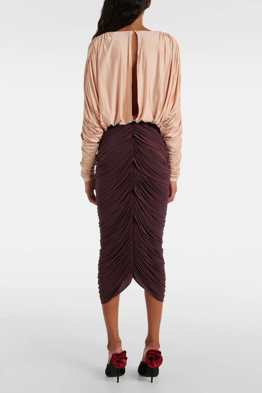 3D Floral Jersey Ruched Midi Dress