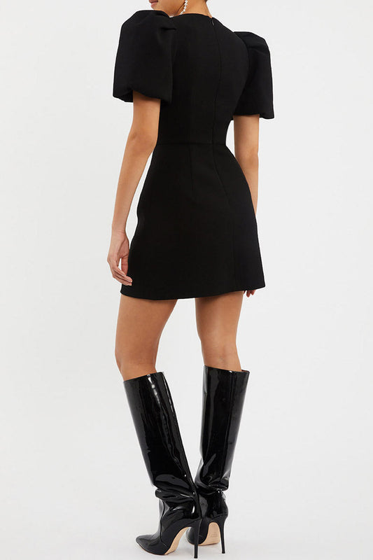 Black Leopard Lantern Sleeve Button Up Mini Dress