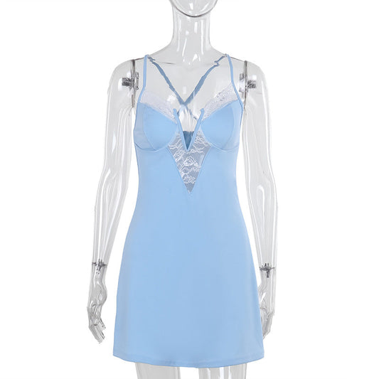 Autumn Classic Elegant Slim Strap Lace V neck Sexy Mini Dress