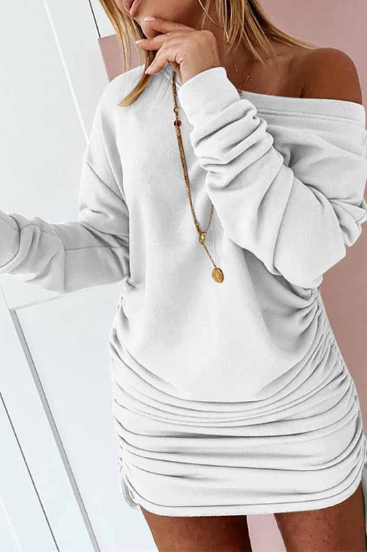 Casual Long Sleeve Pleated Solid Color Mini Dress
