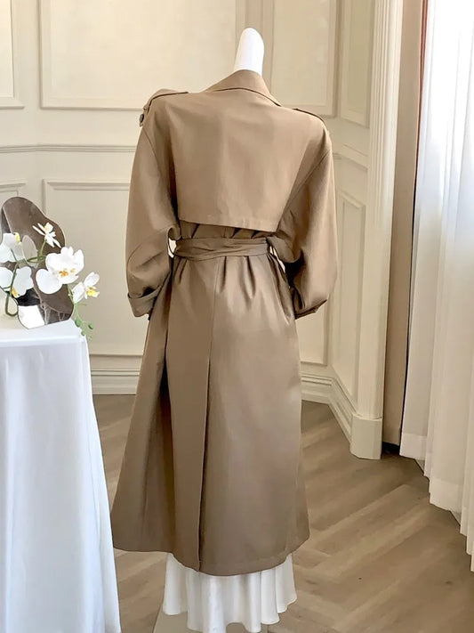Autumn British Style Long Trench Women Lapel Double Breasted Coat with Belt Korean Fashion Windbreaker Outerwear Casual Jackets