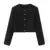 Autumn O neck Soft Woolen Black Tweed Coat Cropped Vintage Women Silver Buttons Full Sleeve Short Blazer Elegant Jacket