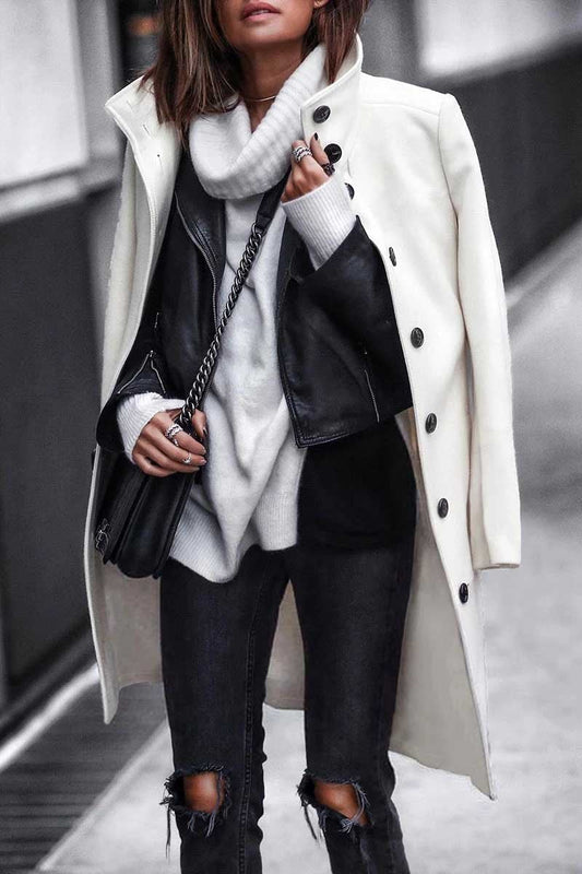 Button Down Long White Coat