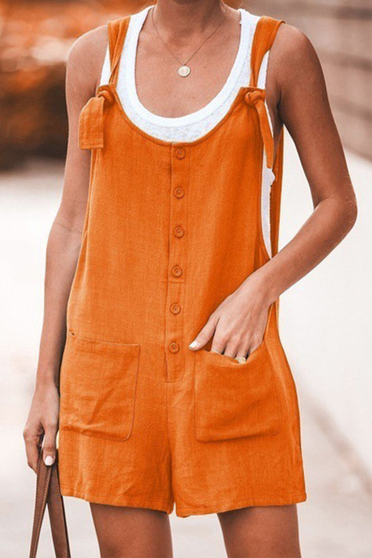 Casual Daily Solid Pocket Buttons U Neck Loose Rompers