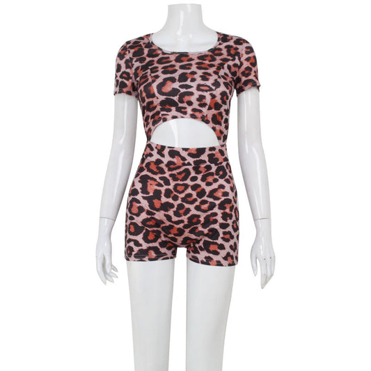 Summer Women Sexy Leopard Print Short Sleeve Backless Romper Sexy Jumpsuit for Women