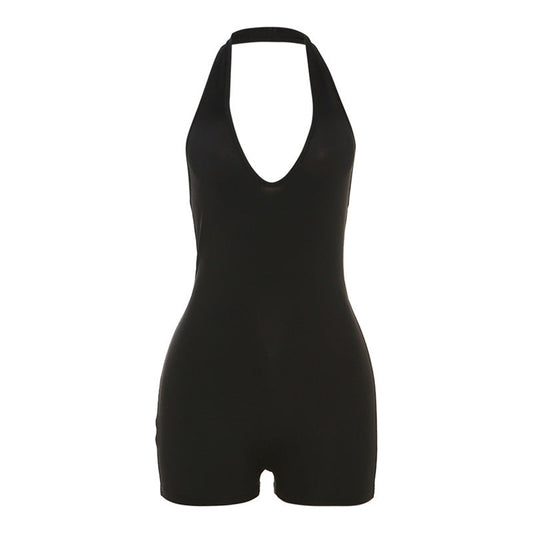 Summer Women Clothing Sexy Casual Low Collar Halter High Waist Tight Backless Romper for Women