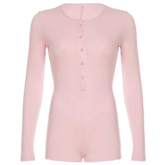 Solid Color Jumpsuit Autumn Slimming Breasted Bottoming Sexy Long Sleeve Romper