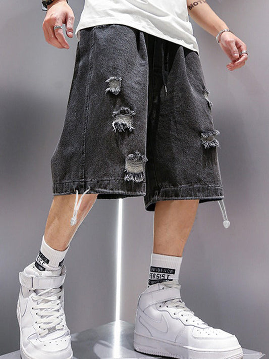 Black Hip Hop Wash Distressed Skate Denim Shorts