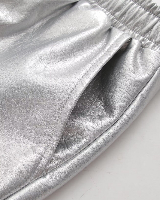High Waist Elastic Drawstring Leather Wide Leg Shorts Women Thin Straight