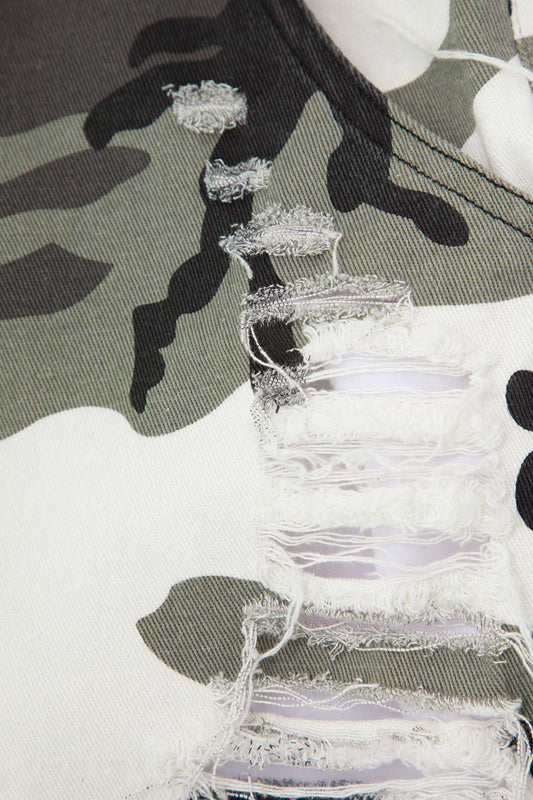 Retro Camo Destroyed Tie Up Cargo Shorts