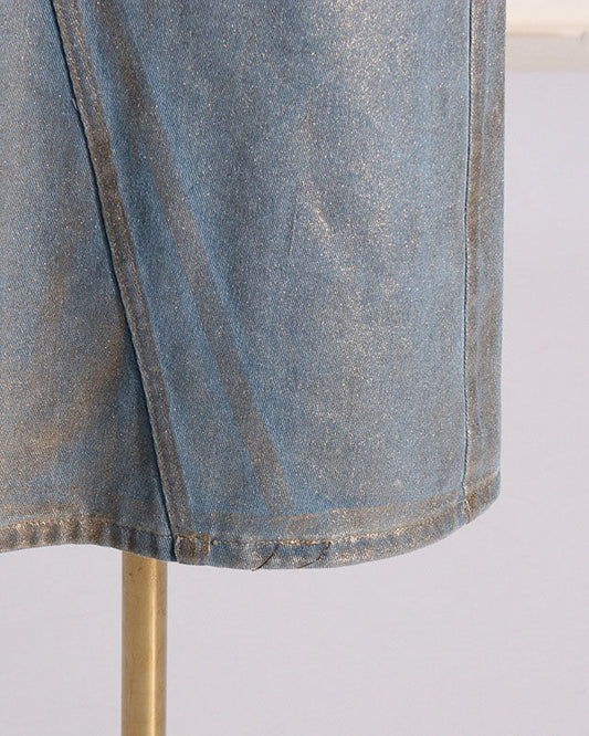 Halterneck Washed Sleeveless Denim Skirt