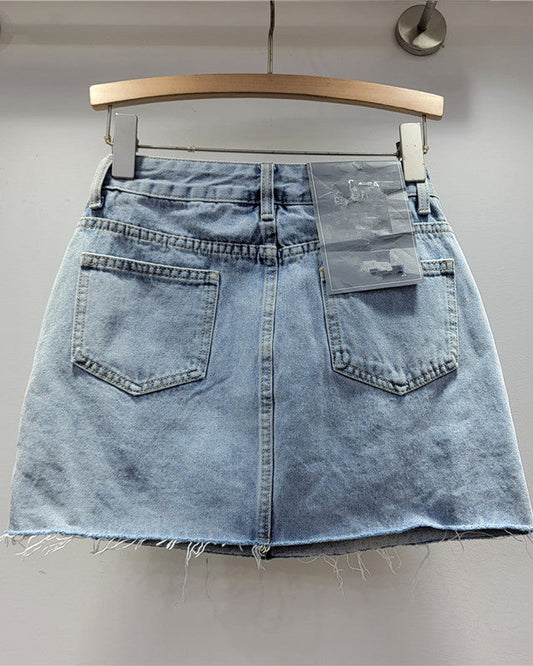 Retro Distressed High-Waisted Ripped Denim Hip-Hugging Skirt