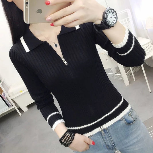 Autumn Spring Style Women Knitted Pullover Tops Lady Casual Zipper V-Neck Knitted Pullover Sweater ZZ0972