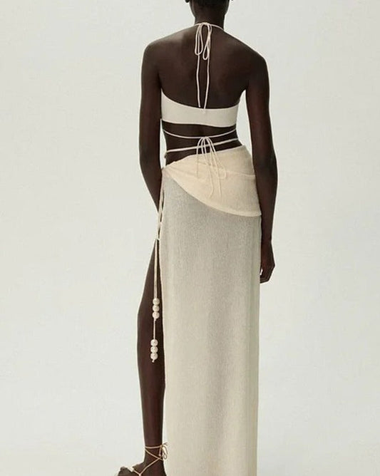 Hollow Knitted Tassel Sexy Dress Beach Bikini Cover-up Vacation Swimsuit Long Skirt