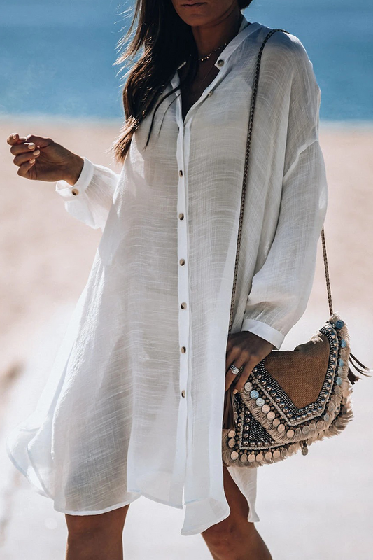 Casual Street Solid Color Buckle Buttons Slit Swimwears Cover Up