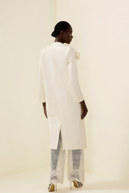 3D Floral Solid Long Sleeve Coat