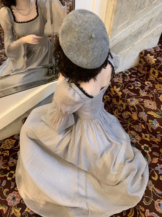 Autumn Princess Midi Dresses for Women Square Collar Flare Sleeve A-line Party Dress Slim Waist Korean One Piece Vestidos New