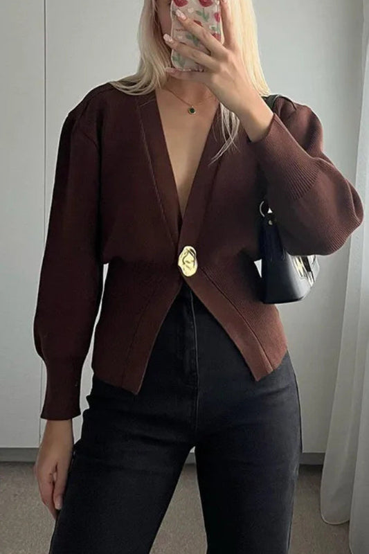 Cárdigan de punto con botones y cuello en V para mujer
