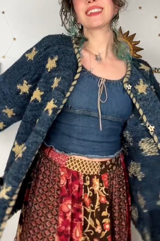 Suéter tipo cárdigan retro con cielo estrellado