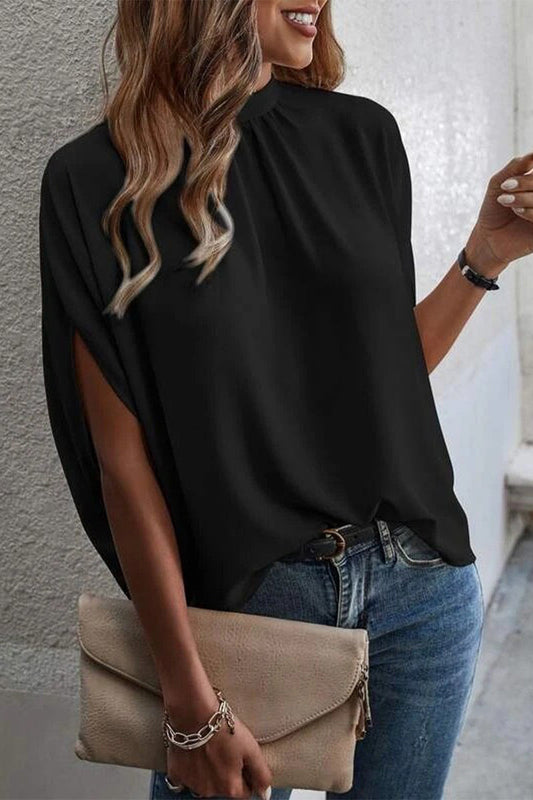 Blusas de verano para mujer, camisas casuales de gasa con cuello redondo y media manga