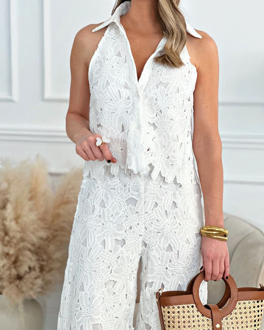Hollow V-Neck Straight Pants Suit