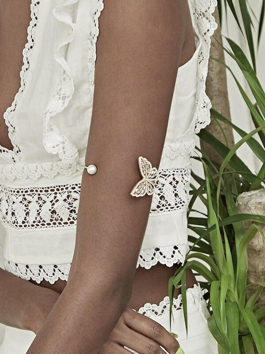 Rhinestone Butterfly & Faux Pearl Decor Cuff Bracelet 1pc for Women