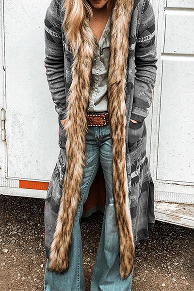 Prenda exterior básica elegante con cuello vuelto y bolsillo de leopardo a la moda