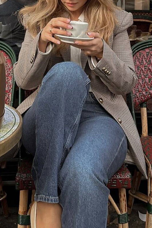 Cárdigan informal de moda con estampado de cuadros y cuello vuelto (4 colores)