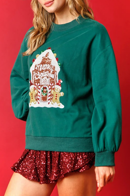 Tops casuales de cuello redondo con lentejuelas de Papá Noel