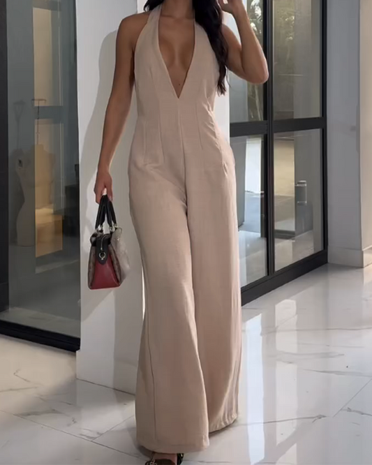 Backless Deep V Pleated Jumpsuit