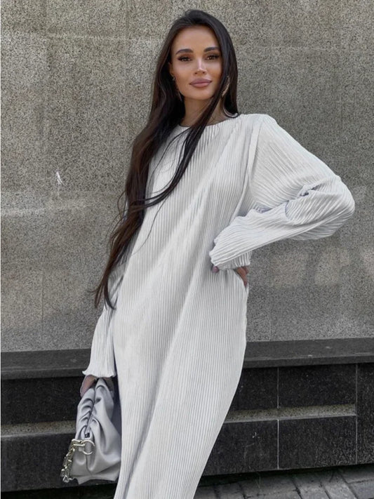 Vestido largo informal holgado para mujer, manga larga, básico, liso, alto, ropa de calle, blanco, de verano, a la moda