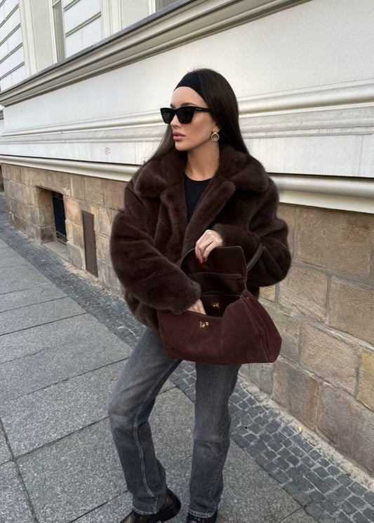 Plush Faux Fur Short Coat – Dark Brown