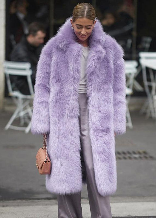 OfertaLuxe Faux Fur Lapel Coat